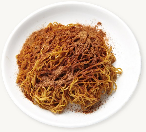 It’s dried noodles slightly fried with sea shrimp roe and mixed with egg noodles. The shrimp roe are too small to chew but as it breaks down between the teeth, the flavor is surprisingly strong, so that you can taste the salty sea in your mouth, even with a small amount. It is best with egg noodles that are as bouncy as string instruments.