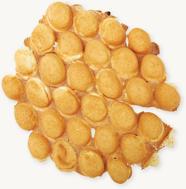 It’s a type of waffle made in a certain shape. There are two stories: some say it’s called egg puffs because there are a lot of eggs in it; and some say it’s because it’s as lumpy as an egg rack. Freshly made egg puffs are crispy on the outside and soft in the inside, which is a good taste to snack on.
