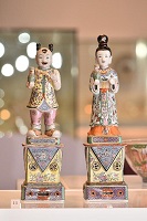 「港彩流金:二十世纪香港彩瓷」展览十二月十八日于香港文化博物馆开幕。图示展览展出仿干隆粉彩对仙立像。