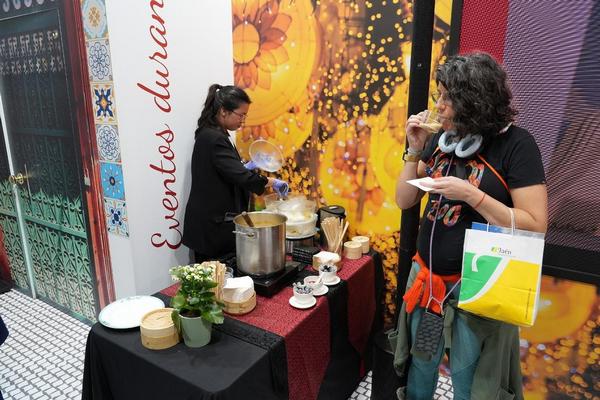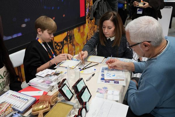 澳门展馆今年以更丰富的元素展示澳门多元“旅游+”及中西文化交融的独特魅力。馆内特设葡萄牙土风舞、太极、咏春与葡萄牙瓷砖彩绘等澳门非物质文化遗产体验工作坊及澳葡特色小食,让欧洲业界亲身感受澳门多元文化与旅游资源,有利设计更多深度游及“一程多站”联游产品,现场吸引众多业界人士驻足参与。