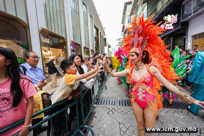巡游队伍从大三巴牌坊出发,穿梭澳门历史城区的旧街老巷,抵达板樟堂前地与居民旅客近距离互动;随後途经议事亭前地抵达南湾湖景大马路的“VIVA嘉年华”,现场设特色美食、创意互动体验游戏及彩绘等项目,为盛事增添更多活力。是次嘉年华首度提前於3月28日开放,率先预热,营造欢乐氛围。