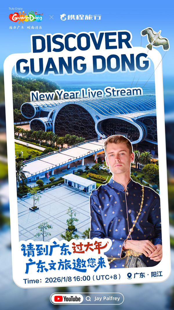 新春将至,年味渐浓。1月8日至1月16日,三位来自英国、韩国、墨西哥的全球旅游达人——@Jay Palfrey(英国旅行达人,全网粉丝157万)、@Kelly(韩国旅行达人,全网粉丝151万)和@Max y Noelia(墨西哥旅行达人,全网粉丝786万)将齐聚广东,分别走进阳江、深圳、汕头三座城市,通过YouTube平台进行实时海外直播。他们将以多元的视角,向全球观众生动展现粤式新年的独特魅力。每一缕烟火都饱含地道的岭南韵味,每一处景致都蕴藏新春的惊喜。欢迎跟随达人们的镜头,来广东体验一个不一样的中国年!