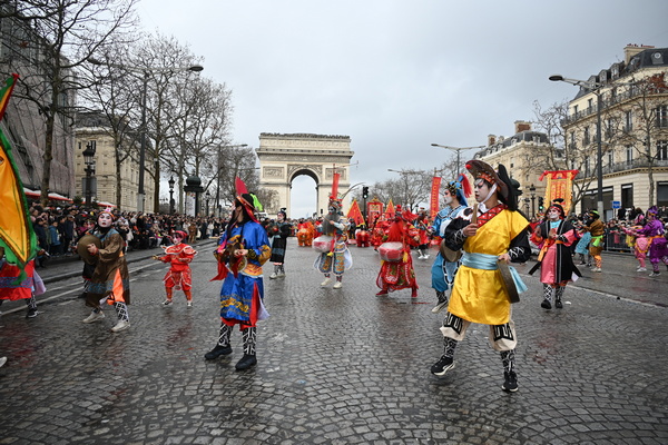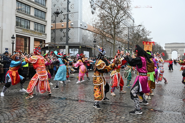整场巡游集中呈现醒狮、舞龙、英歌舞、传统武术、民俗舞蹈等十余个富含中国传统文化元素的方阵,全方位展现中华文化的深厚底蕴。活动当日,约十万名巴黎市民与国际游客驻足香榭丽舍大街。巡游活动将中国春节的喜庆氛围与美好祝福传递至街区每个角落,打造了一场融合传统与现代、民族与世界的城市文化盛会。