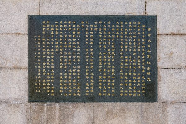 纪念碑正面镶有以青石刻造的「西贡抗日英烈纪念碑志」,摄于二○二五年。©古物古迹办事处