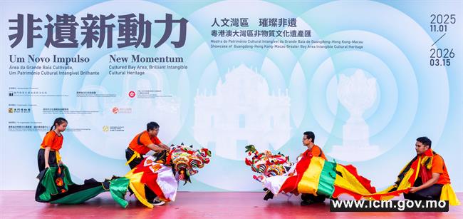 “非遗新动力——人文湾区·璀璨非遗:粤港澳大湾区非物质文化遗产汇”於2025年11月1日至2026年3月15日举行,活动设有专题展览、技艺互动展示、体验工作坊及非遗文创产品销售。“非遗新动力”专题展览由2025年11月2日至2026年3月15日在澳门博物馆三楼举行,展览以“岭南色蕴”“几何造物”“音游嬉戏”“意境之外”四个主题,分别展示粤绣、彩紮、木雕及广彩等逾50项湾区具有代表性的非物质文化遗产项目,让公众感受三地非遗的独特魅力。