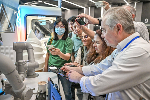在深圳科学技术馆,数字文明体验空间以沉浸式场景呈现前沿科技,各类互动展项打破“隔着玻璃观展”的传统模式,篮球、足球、乒乓球等趣味体验项目,将深奥的科学原理转化为可触摸、可参与的游戏。成员们手捧由光伏技术驱动的AI咖啡机器人制作的精准人像拉花饮品,在醇香与趣味交织间,深切体会到深圳文旅与科技融合发展的别样活力。