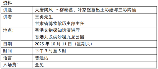 「唐风万里:多元交融开放的盛世」展览讲座系列——大唐陶风–穋泰墓、叶家堡墓出土彩绘与三彩陶俑&从考古视野看盛唐之都–长安