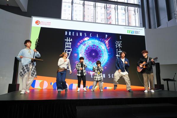 「香港流行文化节2026」节目简介会今日(三月十一日)在东九文化中心举行。图示开幕节目《梦之深境》策划人、第四十三届香港电影金像奖最佳原创电影音乐得奖者兼二胡演奏家朱芸编(左一)与其他表演嘉宾演出音乐会选段。