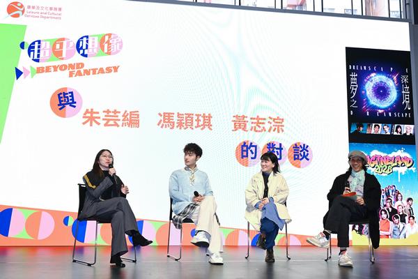 「香港流行文化节2026」节目简介会今日(三月十一日)在东九文化中心举行。图示康乐及文化事务署高级经理(流行文化)陈素贤(左一)、开幕节目《梦之深境》策划人冯颖琪(右二)和朱芸编(左二),以及户外音乐嘉年华《ImagineLand》音乐策划人黄志淙博士(右一)介绍「香港流行文化节2026」节目策划意念。