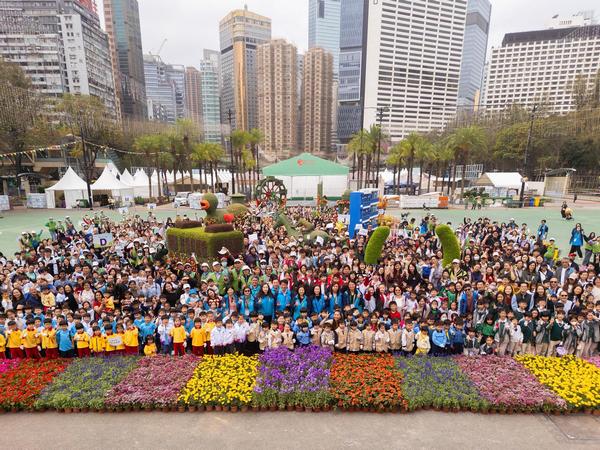 超过一千一百名来自三十八间学校的学生,今日(三月七日)于维多利亚公园参与镶嵌花坛活动。