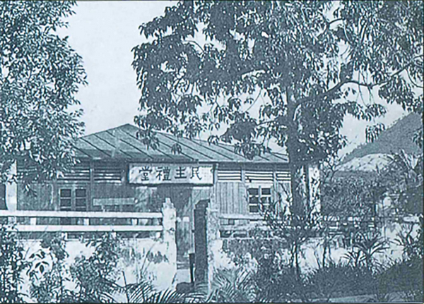 Democracy Hall was built with funds raised by the students and teachers of Ta Teh Institute. Featuring a simple design, it was used to hold thematic talks, circa the 1940s.Courtesy of Professor LAU Chi-pang, BBS, JP