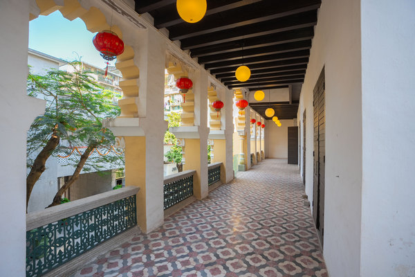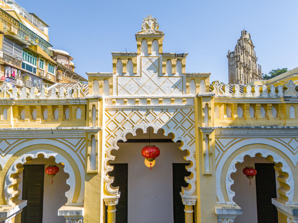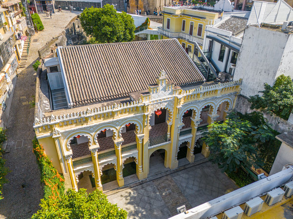 The building of Ho’s Clan Association Macau is located at No. 35, Rua de S. Paulo. Records indicated that a building was already constructed on this site as early as 1885. In the early 20th century, the building housed the “Chinese Club” operated by the Portuguese. The architecture of the building features neo-Moorish elements, with a seven horseshoe-shaped arches on the façade. It is a two-story building and originally had a staircase in the front courtyard leading directly to the second floor. The façade is painted in yellow with white trimmings and decorated with Islamic-style geometric patterns.