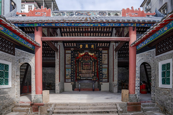 Yan Tun Kong Study Hall is an exemplar of Lingnan traditional architecture in a two-hall-three-bay layout with a courtyard. The ridge and façade are adorned with plaster mouldings featuring auspicious motifs, aswell as artistic decorations typical of Lingnan traditional architecture. The study hall has preserved many delicately crafted architectural components and relics, such as the altar, camel-hump shaped inter-beam blocks, eaves boards, couplets and stone blocks used for martial arts training.
