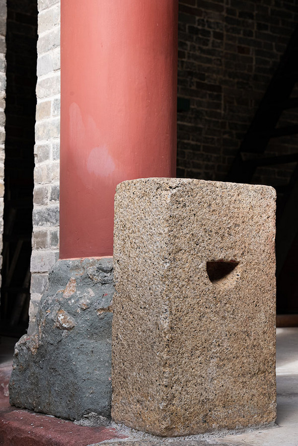 Stone block used for martial arts training is preserved in the study hall, 2024.©Antiquities and Monuments Office