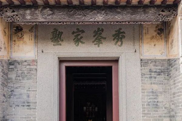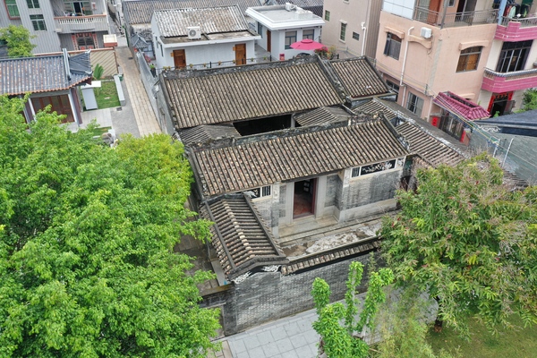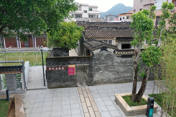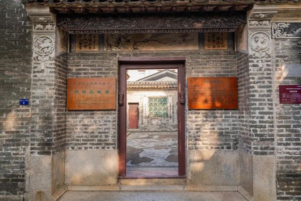 Located at No.6 Xishang Erxiang, Yongmo Village, Sanxiang Town, Zhongshan City, this former residence was originally the ancestral home of Zheng Guanying and was built during the Qing Dynasty. In 1903, the residence was reconstructed by Zheng Guanying and his brothers to commemorate their father, Zheng Qihua. The house is a courtyard-style building facing south with a total area of approximately 305㎡. It has a frontage of 15.38 meters and a depth of 19.7 meters. The entrance is located on the west side of the courtyard. The main structure consists of three rooms and two courtyards, with an east-side extension. The building is made of brick and wood, with a hard gable roof, blue brick walls, and granite foundations. The front courtyard features two side rooms, with a stone plaque above the main gate inscribed in regular script with the words "Xiufeng Jiasu" (秀峰家塾), meaning "Xiufeng Family School." The plaque is dated "Rebuilt in the 29th year of the Guangxu reign, in the month of spring." The rear courtyard features a grey sculpted ridge, and the interior contains a main hall and side rooms. The main hall is adorned with gilded wood carvings and a religious altar. The east-side extension houses a kitchen, water well, and firewood storage. Rain shelters are built on both sides of the front and rear courtyards.