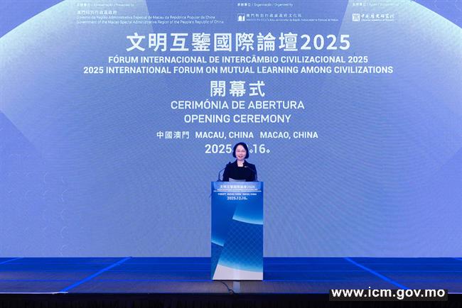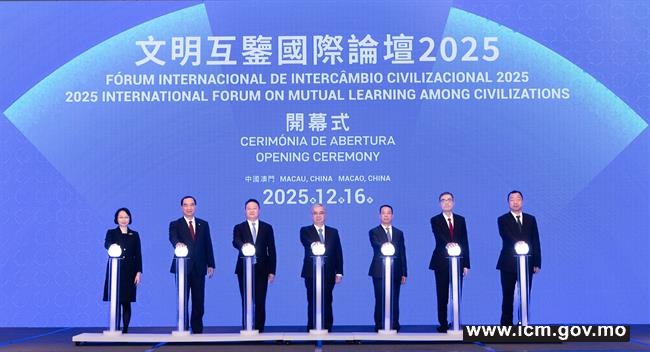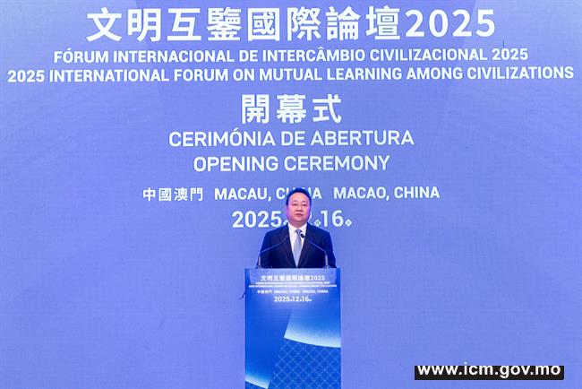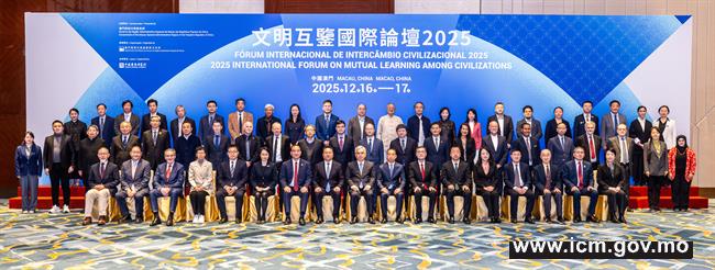 Presented by the Government of the Macao Special Administrative Region, organized by the Cultural Affairs Bureau, and supported by the Chinese Academy of History of the Chinese Academy of Social Sciences, the “2025 International Forum on Mutual Learning among Civilizations” was grandly held today (16 December) at the Grand Ballroom of the JW Marriott Hotel Macau.
