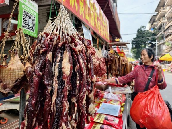 Erma Lu Wholesale Market is one of Zhaoqing's best-known places for Chinese New Year shopping. From dried goods and cured meats to candies, red envelopes and couplets, the market offers a wide selection in one stop.Don't forget to try Zhaoqing guozheng zongzi, a local specialty made with glutinous rice, mung beans and pork, wrapped in leaves and slow-cooked—a traditional flavor many families associate with the Chinese New Year season.