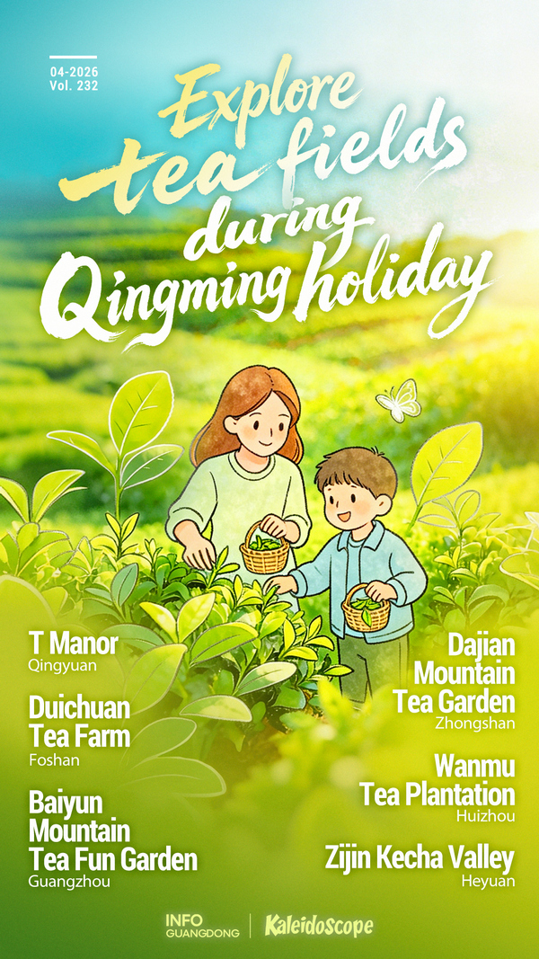 Spring tea picking season is in full swing across Guangdong. Early spring tea stands out for its fresher aroma and more delicate flavor compared to later harvests. Many plantations are now open to visitors, offering hands-on experiences from tea picking to processing. For those planning a spring outing during the Qingming Festival holiday, a walk through the tea hills is a perfect choice.