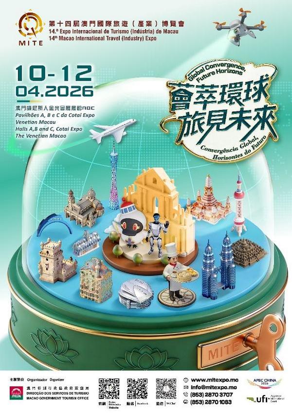 The 14th Macao International Travel (Industry) Expo (the “Expo” or “MITE”) will take place at Halls A, B and C, Cotai Expo of the Venetian Macao for three days from 10 to 12 April. The public is welcome for free admission. Under the theme of “Global Convergence, Future Horizons”, the event will be unveiled this Friday (10 April) and bring together global tourism resources and innovative elements to open up new business opportunities for cooperation across the sectors of “tourism +”.